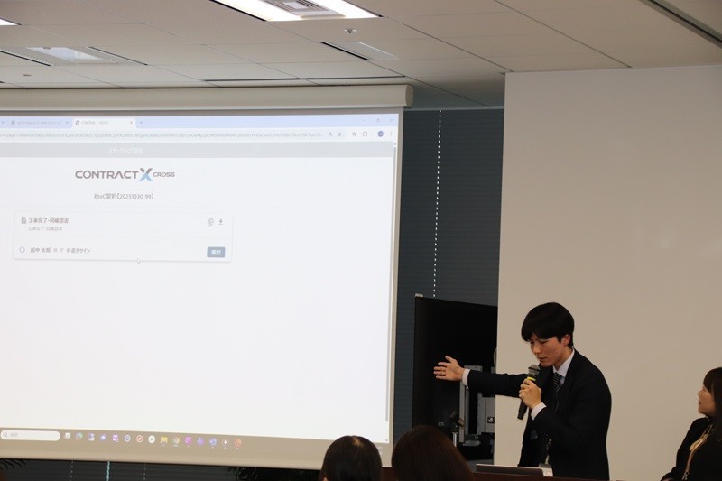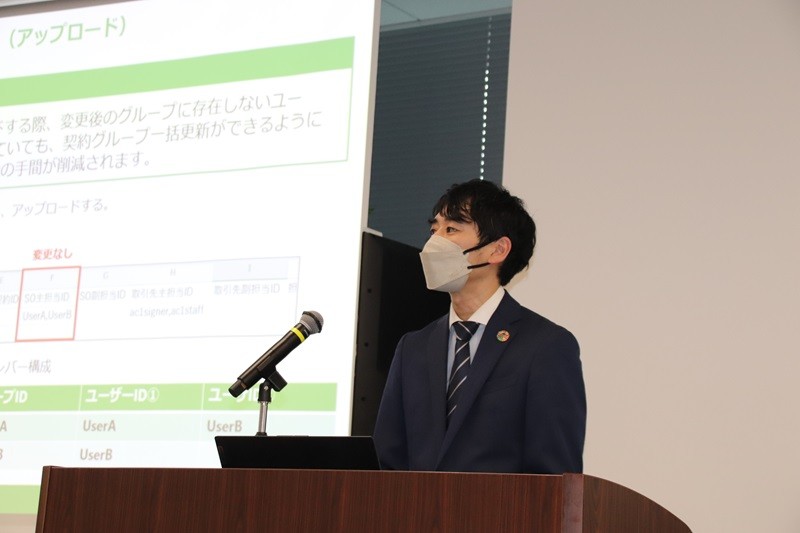 続いて、デジタルソリューション&コンサルティング本部 営業本部の狩野 凌雅がCONTRACTHUBの最新機能について紹介しました。狩野は、2025年度に実施した機能改善を発表、「ユーザーの皆様からの声をもとに、日常的な操作の利便性を高めるアップデートを行った」と語りました。