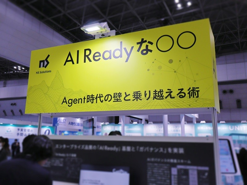 NSSOLブースでは、AIを業務で継続的に活用できる状態を実現するための考え方として、エンタープライズ品質の「AI Ready」基盤とAIガバナンスを両輪で整えるアプローチを示しました。分散したデータの統合や品質管理、セキュアなクラウド基盤の整備に加え、判断基準や運用ルール、体制まで含めて整えることを、AI活用の前提として位置付けています。