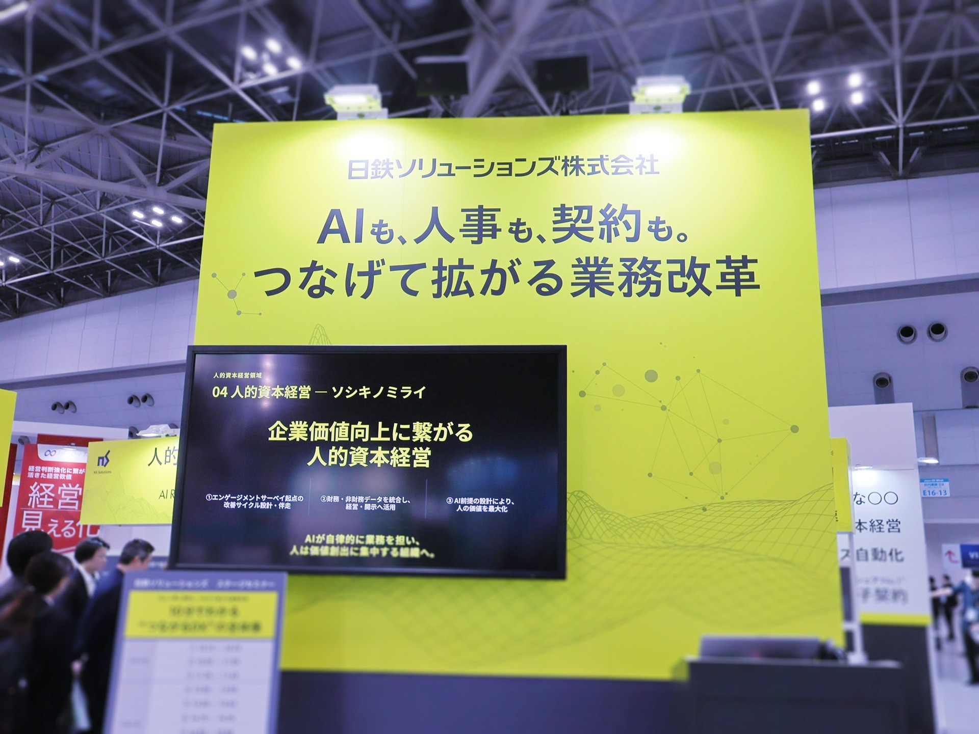 個別改善にとどまらず、全体をつなげて企業価値向上へ導く、その全体設計から運用定着まで伴走できる存在として、NSSOLブースは多くの来場者に強い印象を残しました。