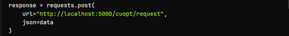 サンプルコードはローカルホスト上にデプロイしたcuOptのNIMモデルに対するリクエストとなっているため、リクエストURLを変更する必要があります。