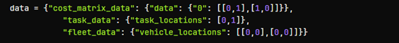 サンプルコードの求解リクエストAPIのリクエストペイロードは、ルーティング問題(TSP、VRP、PDP)用のスキーマの例となっています。求解したい最適化問題がLPまたはMILPの場合は、LP用のスキーマの内容で設定する必要があります。