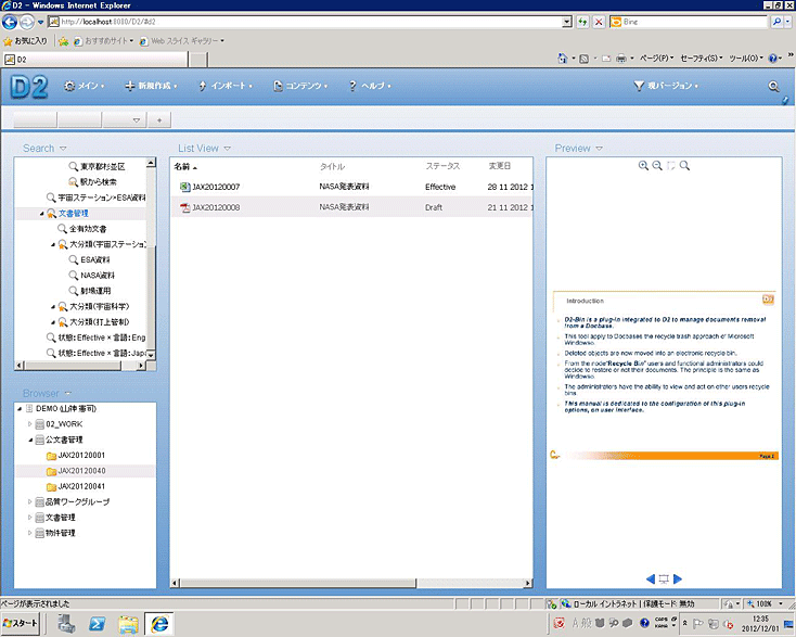 先進的なドキュメント管理機能を提供する直観的なエンドユーザー向けインタフェースを提供します。エンドユーザーが馴染んでいるエクスプローラーに近い操作性を持つため学習は短期間ですみます。