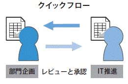 OpenText Documentumは定義済みのワークフローに従った承認プロセスに加えて、クイックフローと呼ばれるアドホックなワークフローを定義することができます。その場その場で必要に応じたクイックフローを定義できるため、レビューや承認の手続きを迅速化することができます。