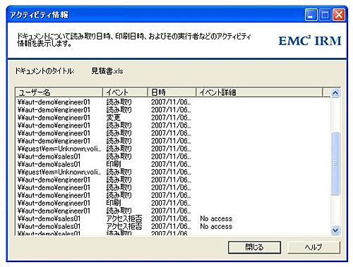 OpenText Documentum IRMは、ファイル単位で詳細かつ強力な保護機能を提供するアプリケーションです。情報の利用や共有を可能にしながら、強力なアクセス権管理によって安全を保ち、さらに情報の追跡を可能にします。