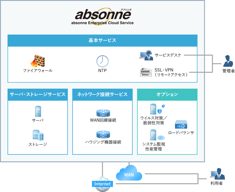 absonneが提供する基盤ITリソースに対して24時間365日受け付けいたします。
