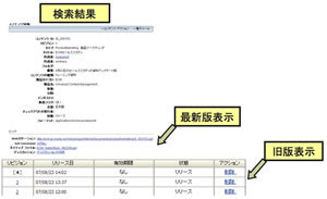 検索結果は常にドキュメントの最新のバージョンが表示されます。過去のバージョンを指定すれば、さかのぼってドキュメントを表示することができます。