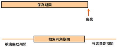 コンテンツの保存期間を設定し、保存期間をすぎたコンテンツは自動廃棄できます。また、各コンテンツの有効期間を属性として設定し、有効期間内のみ検索対象とすることができます。例えば、有効期間が終了したドキュメントを自動的に検索対象からはずします。