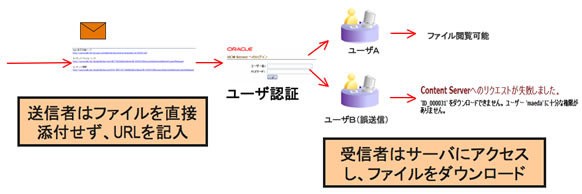 送付するファイルはWCCのサーバーにアップロードし、メールにはそのURLのみを記入して送付することで、誤送信などによる情報漏洩を予防します。