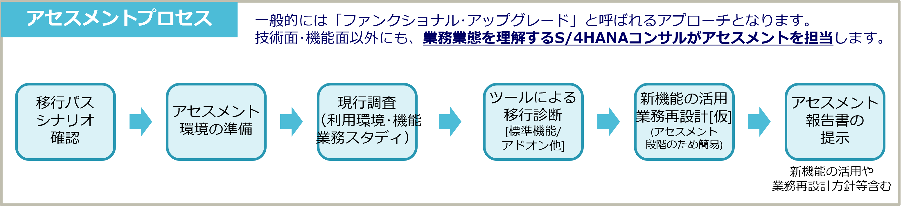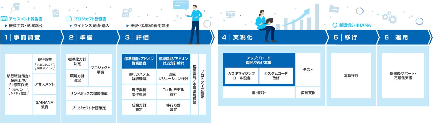 アセスメントから定着化までの包括的なサービス・ラインナップ/メソッドによるスムーズ&スマートなアップグレードをサポートします。