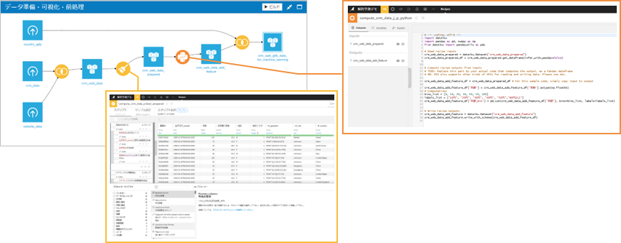 データ加工に必要な機能を提供するレシピを組み合わせて分析用データを準備することが可能です。
