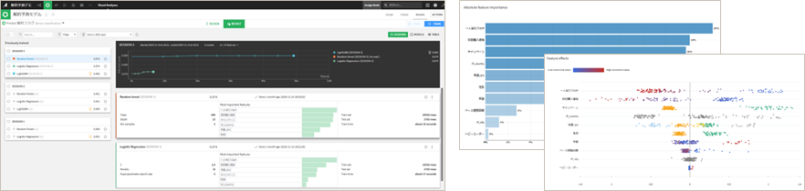 作成したモデルの説明性を確認しながら仮説を立て、特徴量を追加・加工し、再度モデルを構築・評価するという検証サイクルをDataikuの1プラットフォーム上で実現できます。