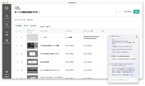 NSDeviaでは「Autify Nexus」と「Autify Genesis」をご提供いたします。「Autify Nexus」はノーコード操作によりシステムのE2Eテストを作成・実行できるテスト自動化プラットフォームで、AIエージェント機能ではチャット形式の指示からテスト作成を支援します。*1
