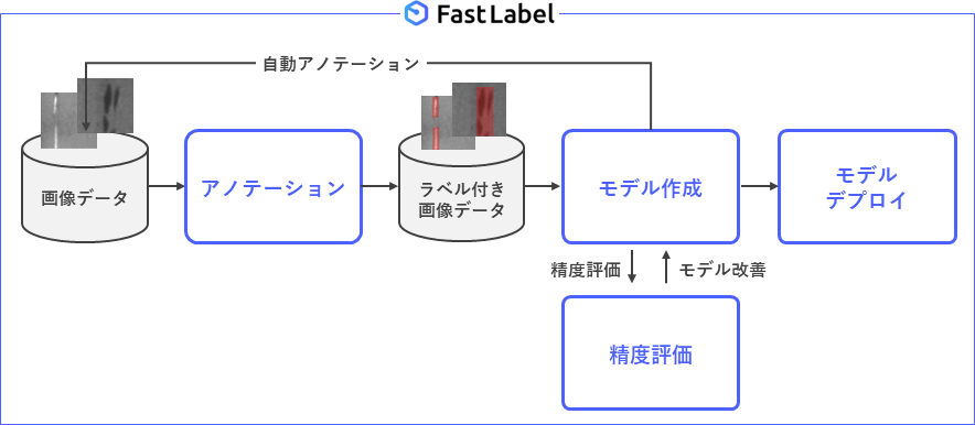 FastLabelの豊富な機能により、アノテーション作業の効率化・品質の向上やAIモデルの学習・評価・運用が非エンジニアでも可能になります。