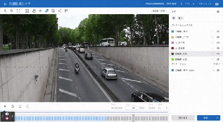 動画に対してフレームごとに検出したい領域を加工アノテーション。動画のフレームごとに何がどこに写っているかを予測。