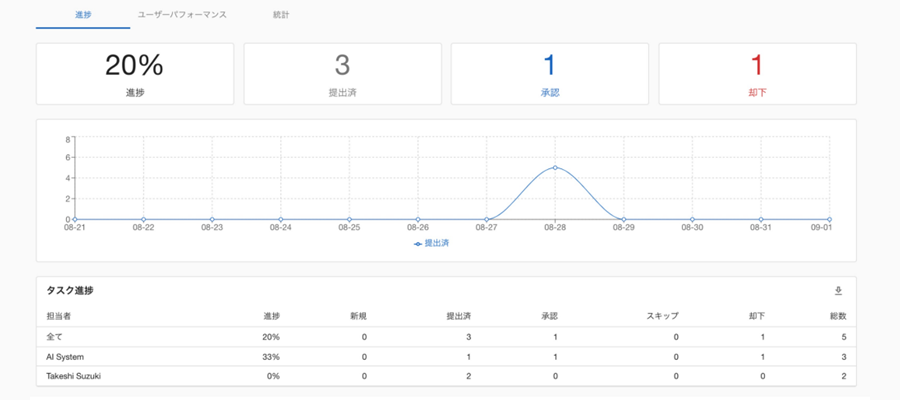 作業進捗や各作業者ごとのパフォーマンスを一括管理