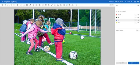 学習済みAIを使用して、クラスの紐付けを行うだけで、ゼロからでもアノテーション作業を自動化し、間違えている箇所を人が修正するだけで、簡単に教師データが作成できます。