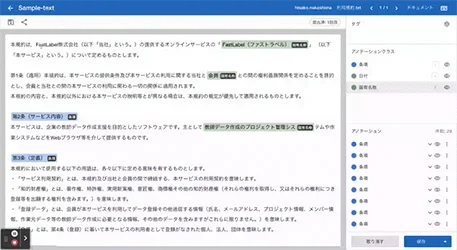 文書内の単語ごとに固有名詞などの分類をアノテーション。文書内の特定の情報を抽出可能。
