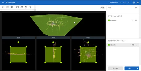3次元上に描写された点群に対するアノテーション。