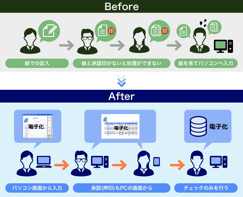 申請、承認、決裁などの業務の流れを電子化し、業務効率を向上。