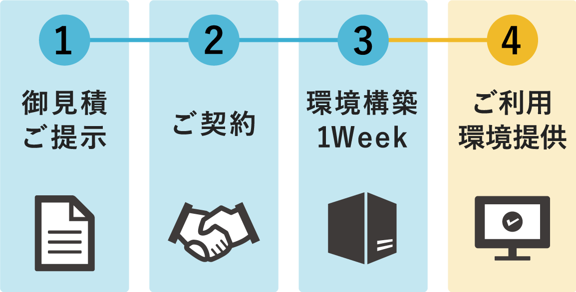 迅速にシステムを構築し、徐々に機能を拡張していただけるよう、最小の基本構成をあらかじめパッケージ化して提供します。スモールスタートでの利用も可能に。