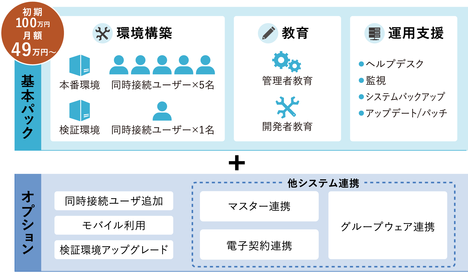 ※オプションで同時接続ユーザーの追加や、モバイル利用、アドオン開発にも対応できます。